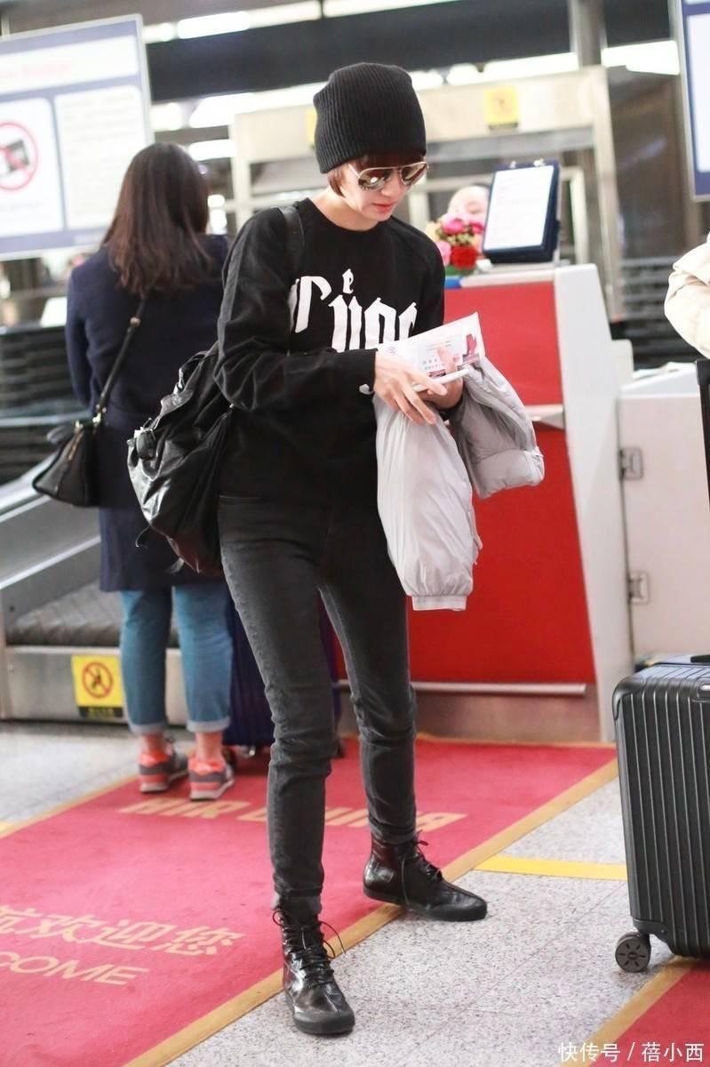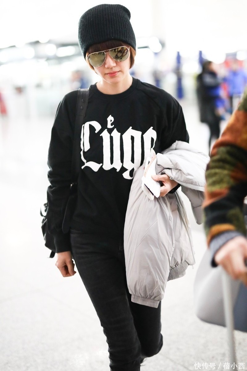 这套全黑造型凸显了袁泉酷飒时髦的气质,上半身的黑色字母卫衣选了微宽松落肩款,既避开了紧身款的局促,又不会像oversize那样压个子,下半身搭配高腰紧身黑牛仔,裤长刚好收在脚踝上方,精准露出脚踝线条,视觉上拉长了腿型,小个子美眉可以多多借鉴这种搭配思路。